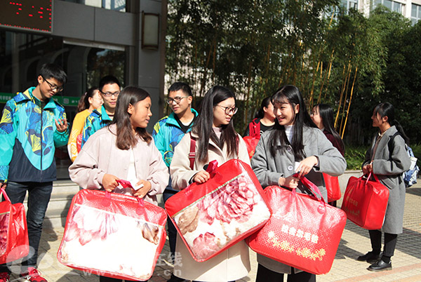 随着天气越来越冷,为帮助贫困生抵御严寒、安心学习,浙江农林大学各个学院纷纷开展送温暖活动,为经济困难学生送上各种保暖用品。