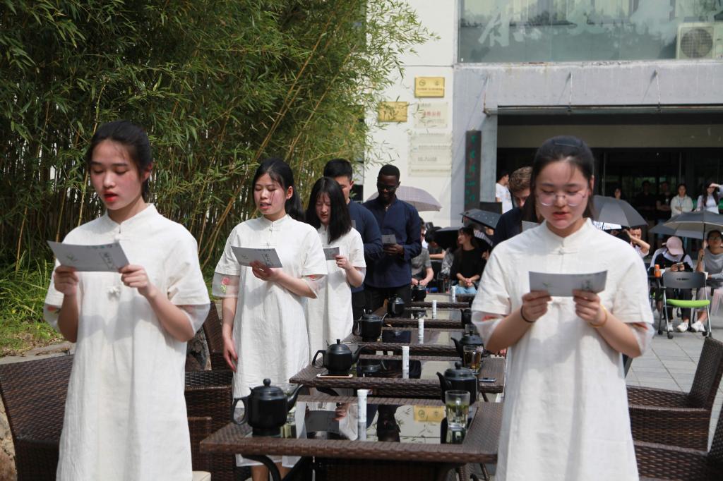 4月22日下午,浙江农林大学茶文化学院在校园里举行“茶式成人礼”。来自浙江大学、浙江财经大学在内的5所高校共21位学生代表参加了成人礼仪式,150多名师生参与观礼活动。
