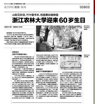 10月20日,浙江农林大学建校60周年的庆典将举行。说起农林大,很多人第一印象就是一个“林”字。事实上,1958年她成立的时候就叫“天目林学院”,1966年改名“浙江林学院”,“浙江农林大学”是2010年后的名字。