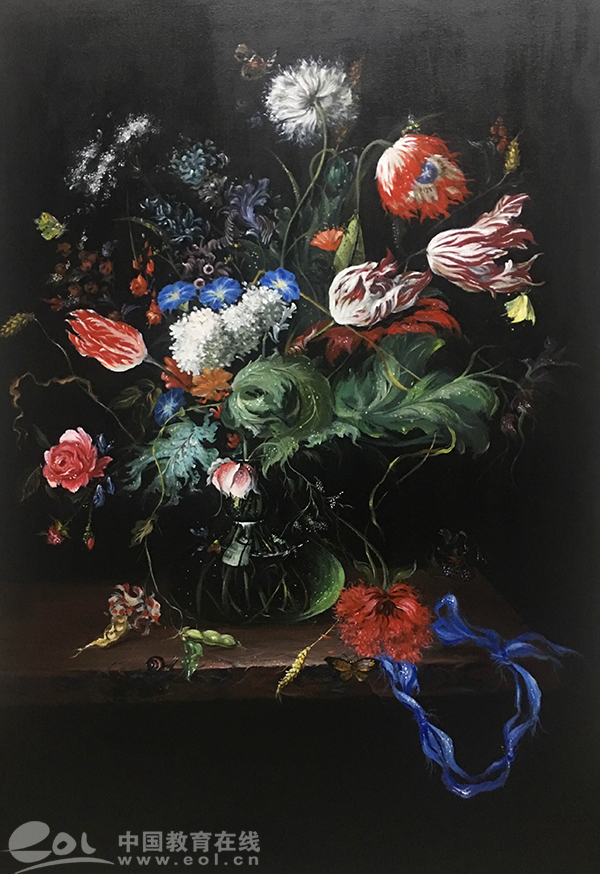 然而,很多师生不知道的是,这些或逼真或传神,或精致唯美或内涵丰富的油画作品,竟然出自一位学习油画才两年多时间的大三学生之手。这名学生叫邵姚,来自安徽安庆,是浙江农林大学艺术设计学院视觉传达162班的学生。