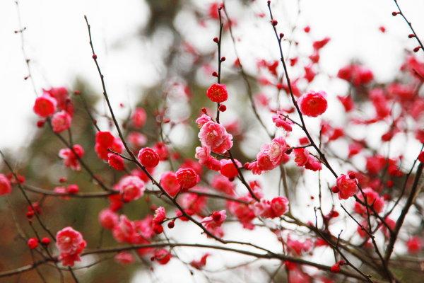 作为国家生态文明教育基地的浙江农林大学,校园里拥有红梅、青梅等各种梅花数千株,遍布校园的各种梅花次第开放,给阴雨天气带来春天的气息。