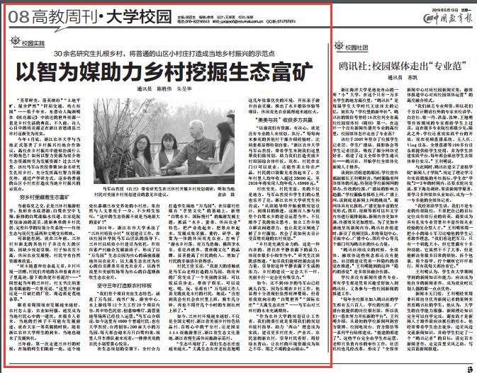 今年4月底,浙江农林大学与当地正式签署了乡村振兴校地合作协议。高校在乡村振兴中能够扮演什么样的角色?如何以智力资源为媒介将生态资源转变为发展资源?过去三年里,该校马军山教授带领30余名研究生扎根乡村,充分发挥高校智力资源优势,通过产学研方式,逐步将普通的山区小村庄打造成当地乡村振兴的示范点。