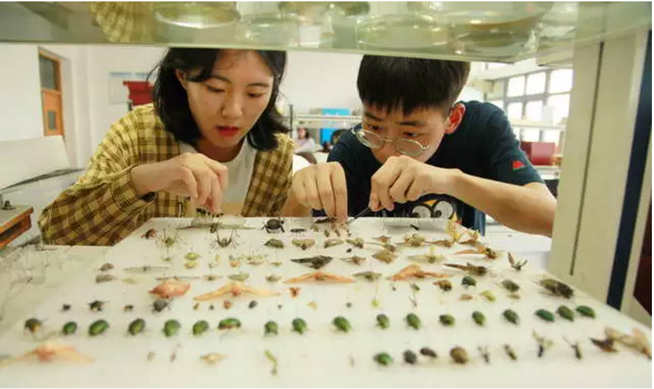 6月底以来,浙江农林大学植物保护两个班的学生,按教学要求,分组到野外捕捉来130个科的数以万计的昆虫,制作成标本。通过走出课堂的实践,学生更好地了解了昆虫的习性与危害,增强对农业的情感和学好专业的信心。图为日前学生们在制作昆虫标本。