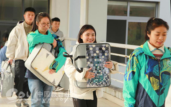 2019年12月4日,浙江农林大学艺术学院的贫困生,开心地领到了学校发放的毛毯等保暖物品。