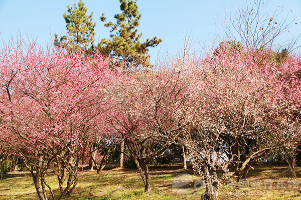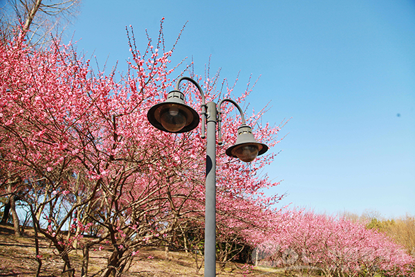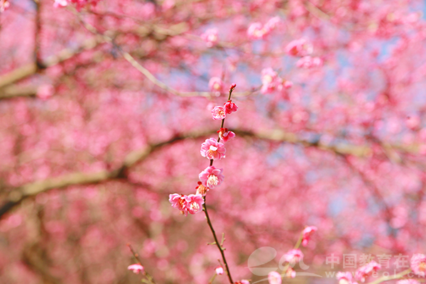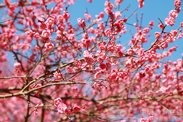 2020年2月18日,阳光明媚,浙江农林大学校园里万千红梅已经盛开,成了花的海洋。
