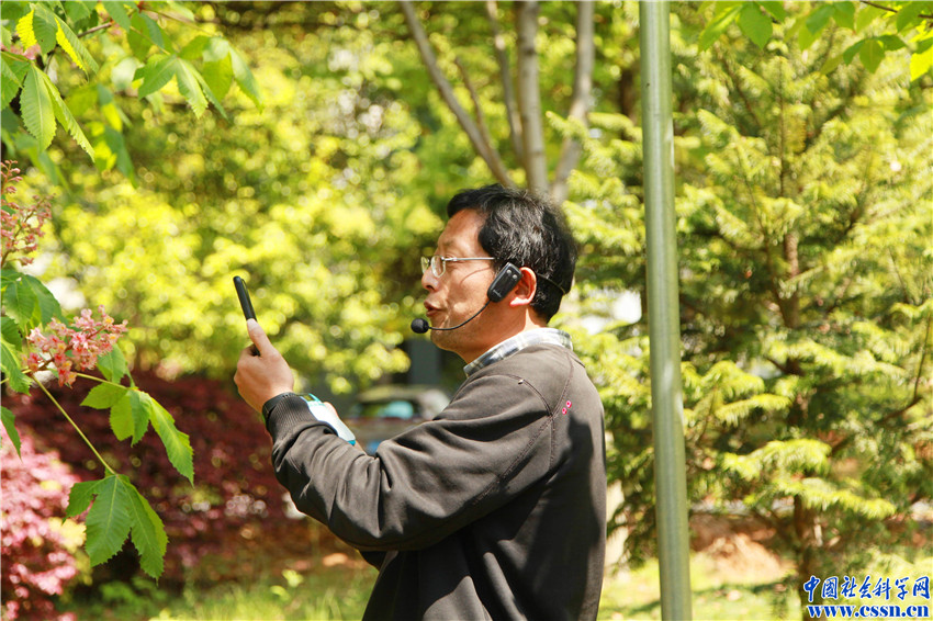 2020年4月23日,杭州,浙江农林大学园林专业主讲《观赏植物学》课程的何云核教授,正通过抖音直播平台向同学们介绍校园里的各种观赏植物。学生们在家里通过“云端”不仅能学到理论知识,还能“身临其境”地在校园里参观,面对面了解、认识各种植物的特性。
