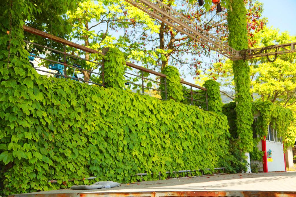 夏日已至,浙江农林大学校园里的办公楼、教学楼、寝室以及各类建筑、亭台布满植物爬山虎,成为校园里的绿色景观。