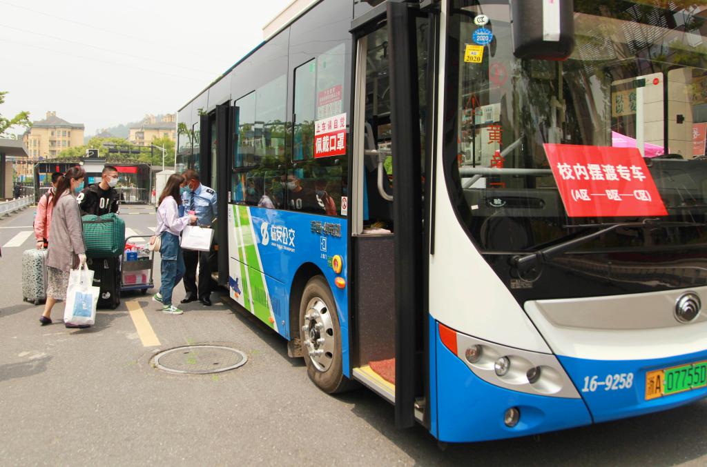 4月27日,是浙江农林大学春季学期首批学生开学返校的日子。为确保学生安全健康,该校专门派出摆渡车、志愿者到各个车站、地铁站迎接学生直抵校门口;自驾车回校的学生则在校门下车,学生家长不进校园、车辆即停即走、原路返回。