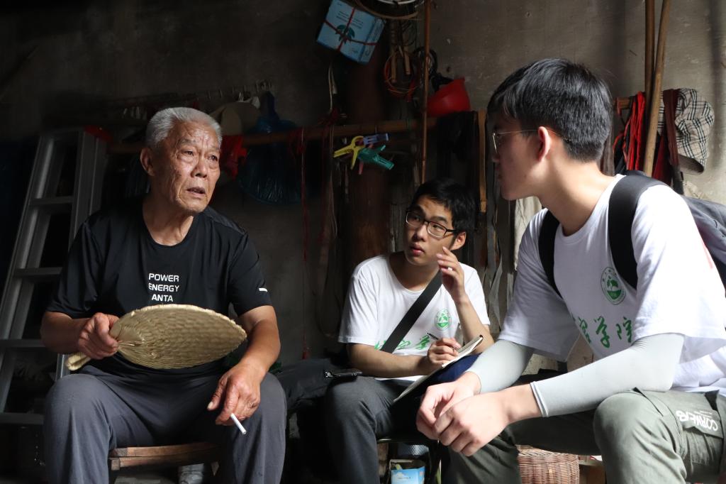浙江农林大学村官学院学生在杭州市临安区龙岗镇老党员家调研农村基层党建工作。