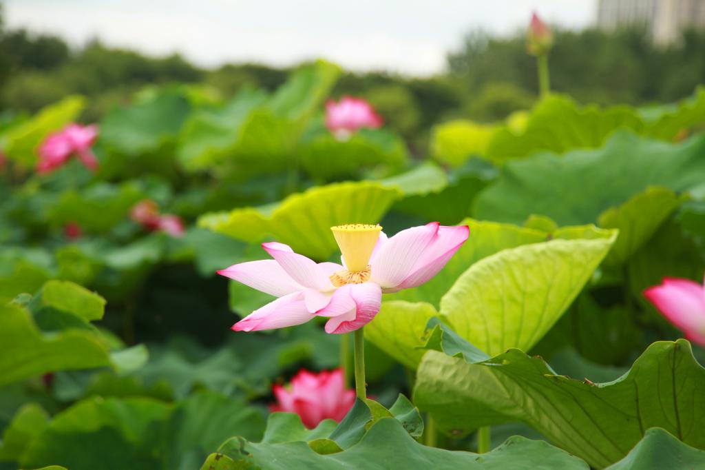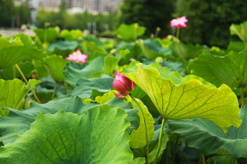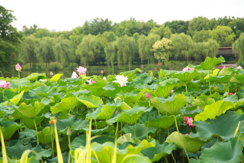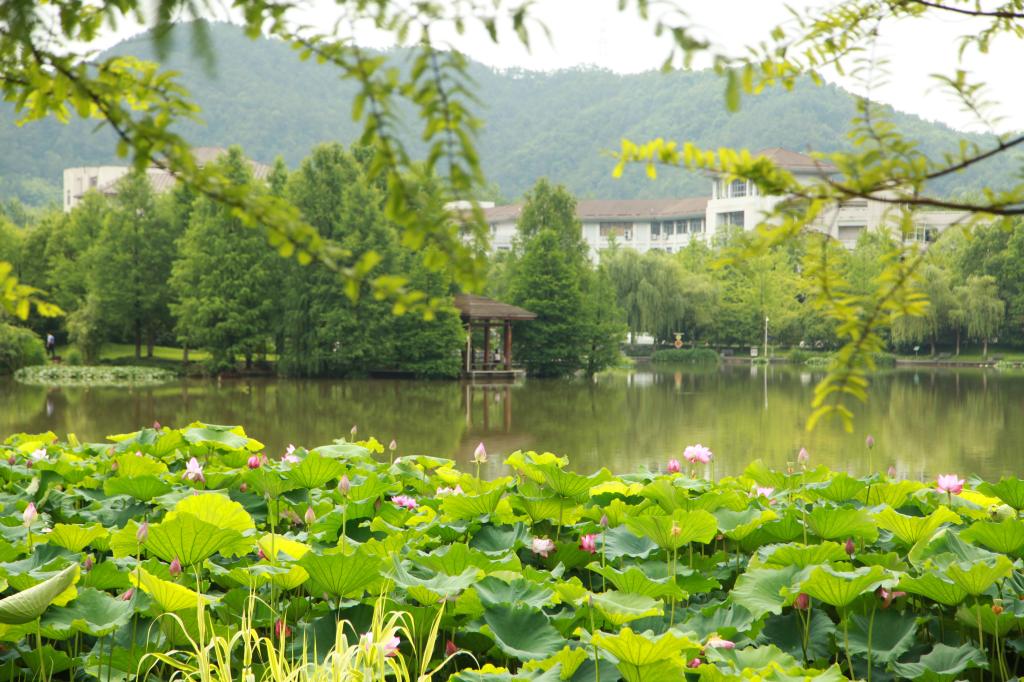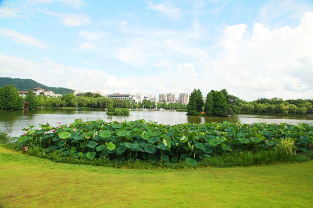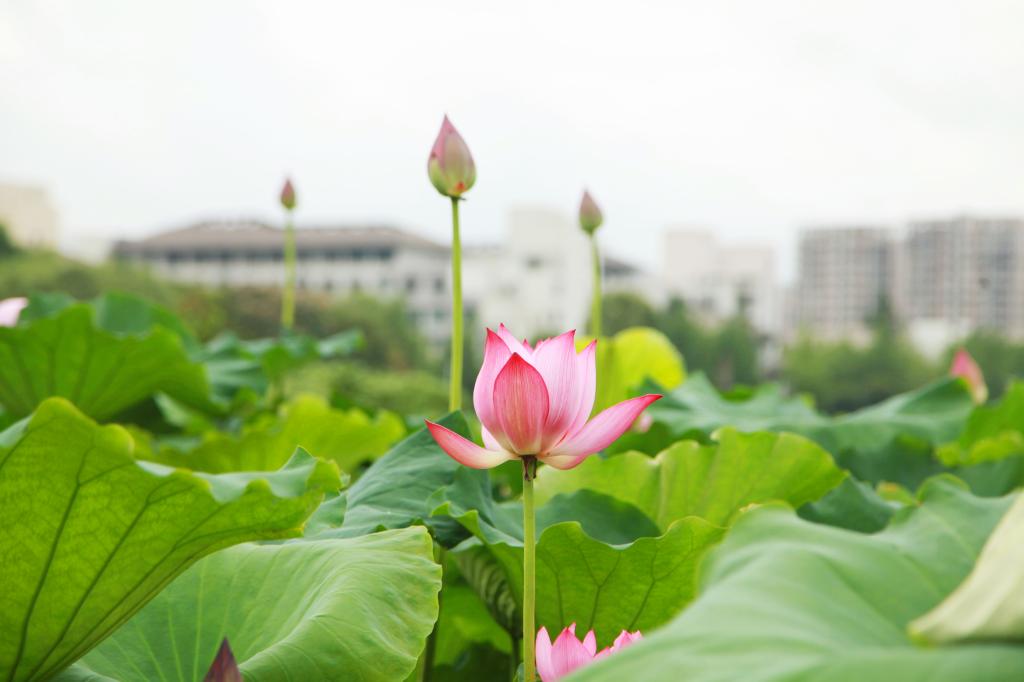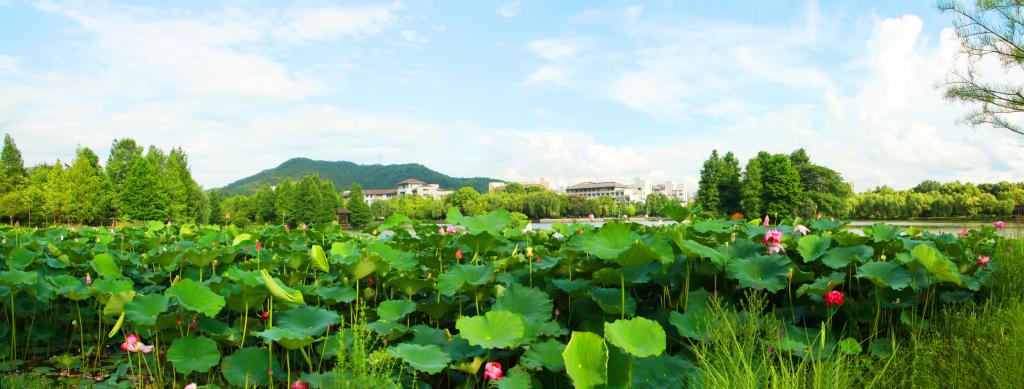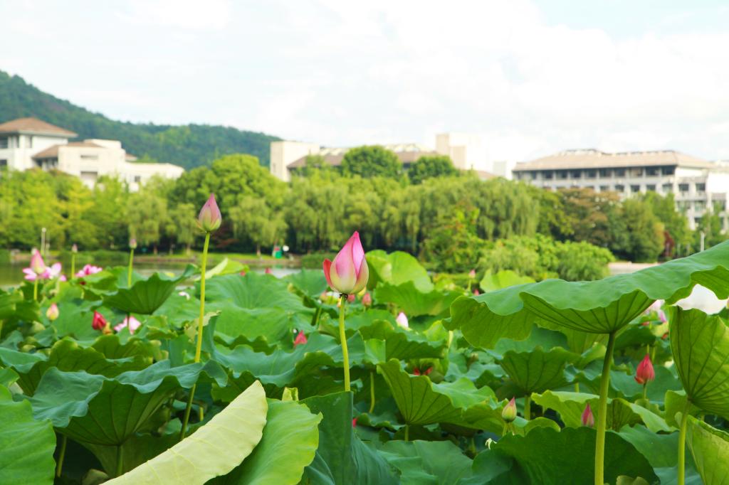 近日,浙江农林大学东湖校区东湖中的数亩荷花次第绽放,为夏日的校园增添了一道别样的风景。