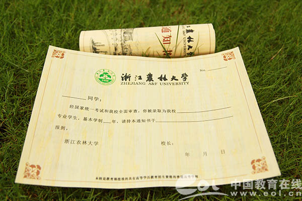 浙江农林大学相关负责人表示,竹子是生态环保的材料,在古代就被大量用于制作竹简等,是记录文化历史的重要媒介,用学校高水平科技成果——刨切微薄竹技术制作录取通知书,向新生传递学校崇尚生态、科技、文化的价值观,这份生态环保、有文化底蕴的录取通知书,对于新生来说也更有收藏价值。