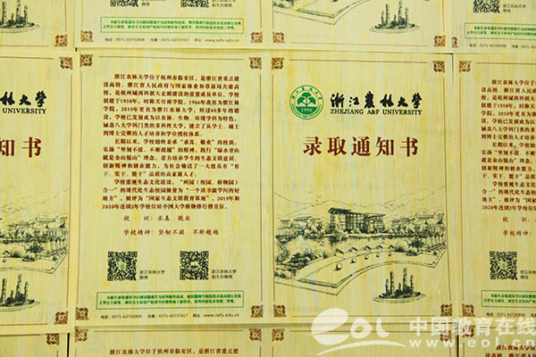 2020年7月27日,浙江农林大学公布由毛竹为原料制作的2020版“最科技”录取通知书。该录取通知书继续以毛竹为原材料,运用该校自主研发的刨切微薄竹技术制作并印刷而成,相关技术曾获国家技术发明奖二等奖,被称为“史上最有科技含量的录取通知书”,今年该校在技术上进一步升级,使“最科技”录取通知书更轻更薄更加环保,耐压耐折更易保存。