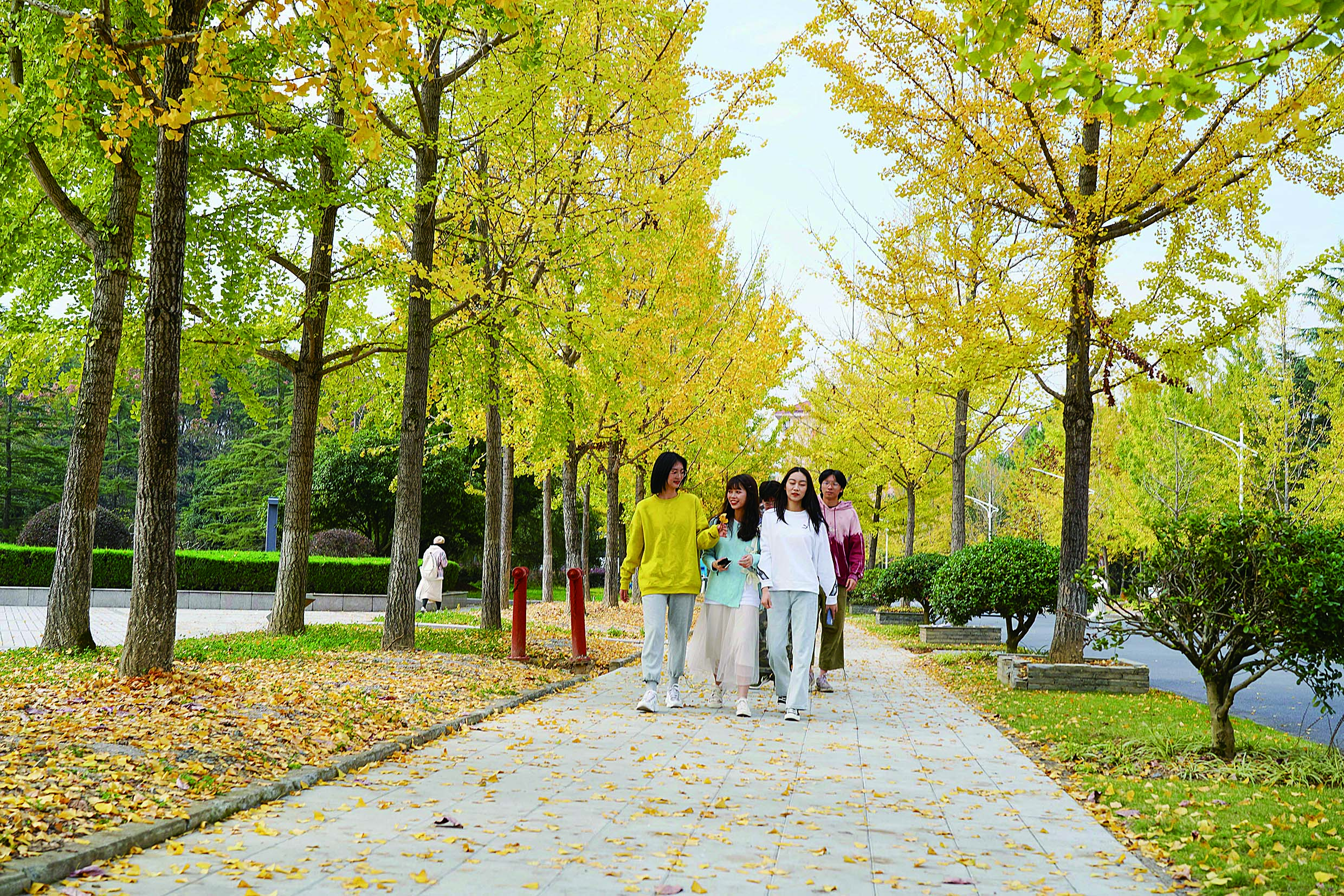 浙江农林大学校园里的银杏一片金黄、美不胜收,师生们在校园欣赏最美银杏、最美秋色。