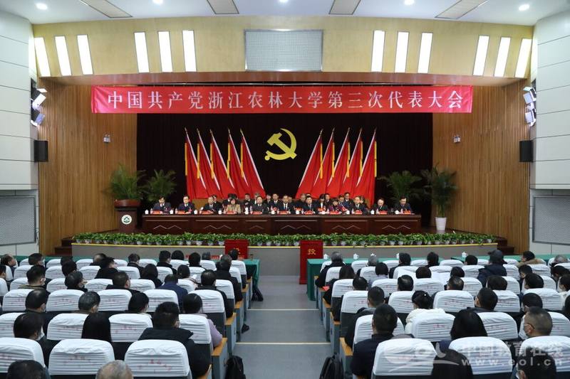 12月30日-31日,浙江农林大学召开第三次党代会。本次大会的主题是:高举习近平新时代中国特色社会主义思想伟大旗帜,全面贯彻党的十九大及历次全会精神、习近平总书记给全国涉农高校书记校长和专家代表的重要回信精神,深入落实全国教育大会、浙江省第十四次党代会精神,坚定践行绿水青山就是金山银山理念,以立德树人为根本、以强农兴农为己任,忠实践行“八八战略”,以建设“三地一窗口”的政治担当,对接服务生态文明建设、乡村振兴和高等教育强省等重大战略部署,聚焦“双一流”目标,激发创造性张力,奋力开启建设区域特色鲜明的高水平生态性研究型大学新征程。
