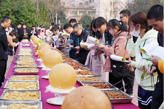 为更好的了解师生口味、引导学生在学校食堂放心饮食,学校食堂还专门举行餐饮文化节。近百名厨师和员工,在校园里现场烧制了近千道美食供全校师生免费试吃、品尝,这些菜肴,有的是食堂经常制作的菜肴、点心,也有的是厨师精心创意、设计的新美味。食堂希望通过这种形式了解师生需求、评选金牌菜和金牌点心,并将根据师生品尝和评选的结果,陆续推出受师生欢迎的部分好菜品。