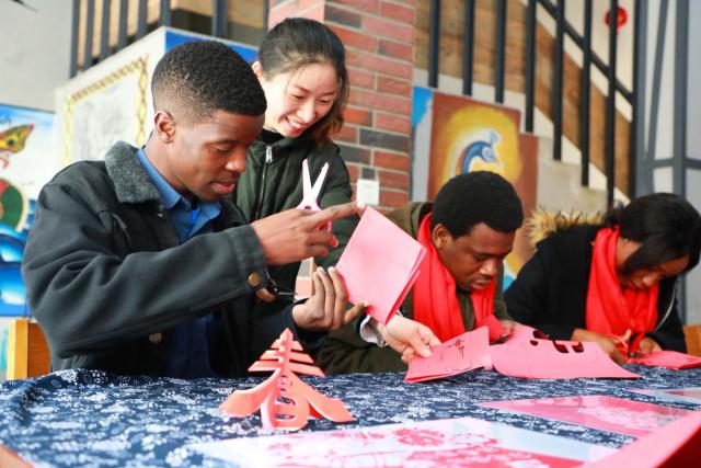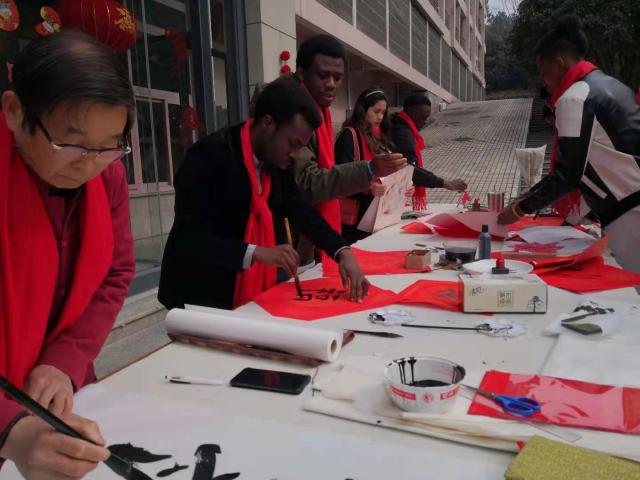 为让海外学子在中国度过一个充实难忘的春节,今天上午,浙江农林大学的校领导一早走进留学生楼,给留学生们送上年夜饭餐券,与他们一起挂灯笼,合唱新年快乐歌。该校国际教育学院还请来校外的书画家,与留学生们一起剪窗花、写福字、画国画。