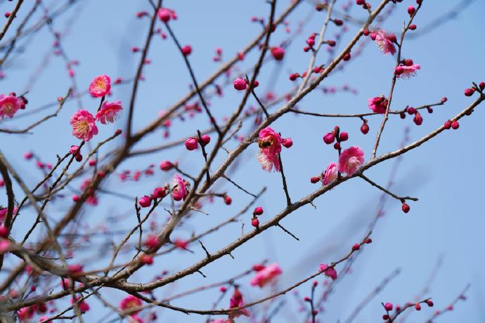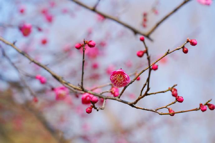 【梅花悄然盛开】#如画杭州#气温回暖,万物复苏。最近几天,在浙江农林大学校园里100多米的梅花长廊里,数千株梅花悄然盛开,在校的学生们纷纷在美丽的梅花前留影。