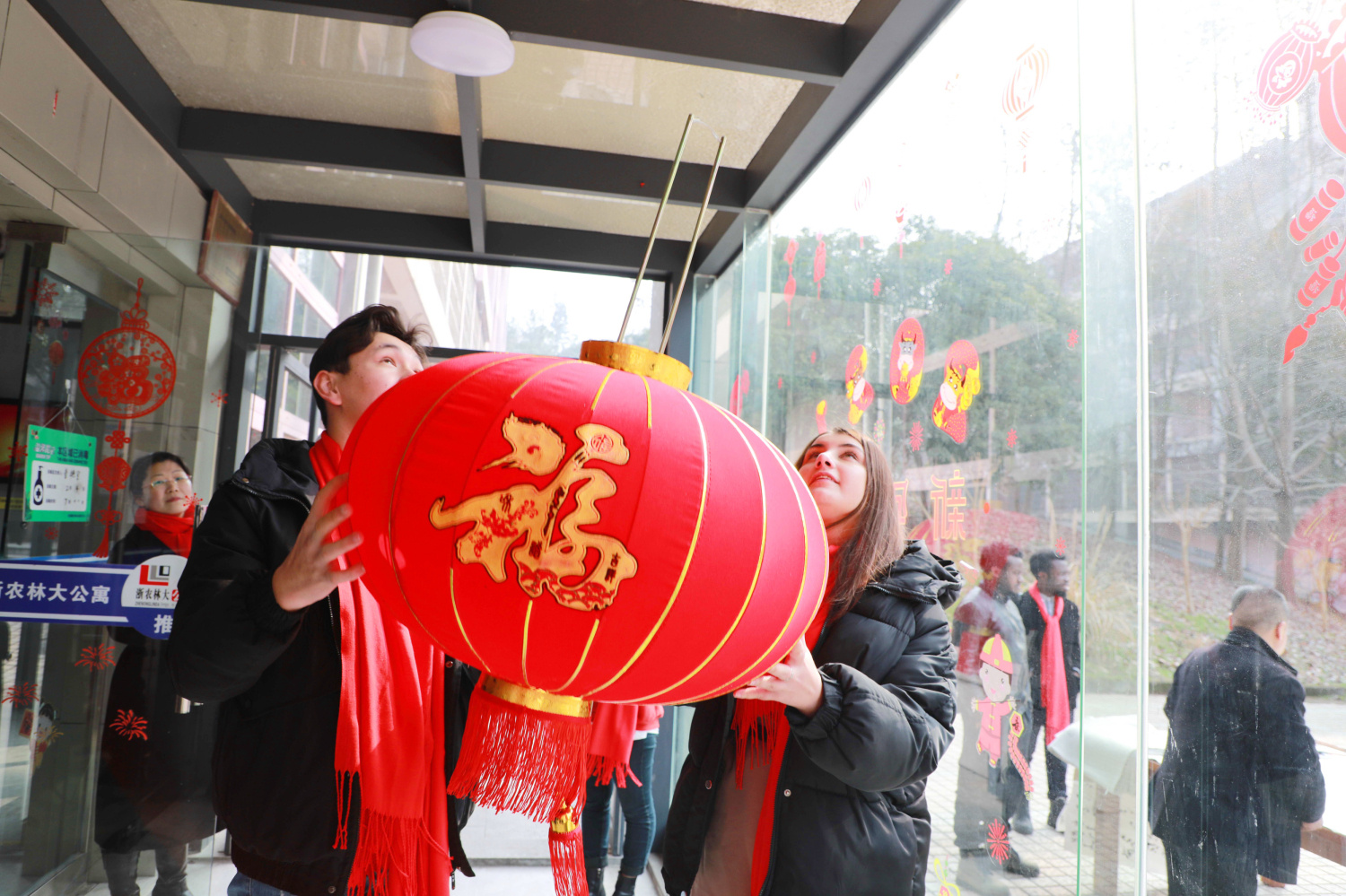 近日,浙江农林大学国际学院的留学生在老师指导下,一起挂灯笼、剪窗花、写对联,体验中国传统的年俗文化,感受浓浓的中国年味。