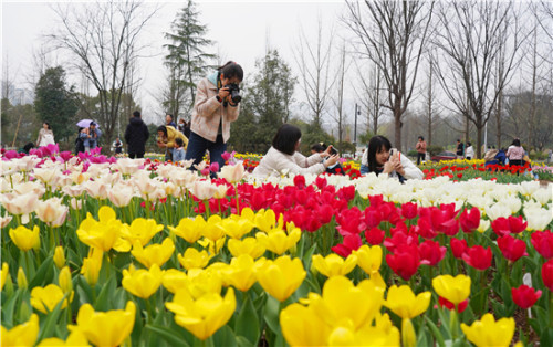杭州网讯 3月14日,天气晴好,浙江农林大学校园里数百种郁金香争相开放,成为格外美丽的“网红打卡地”。不少师生一有空闲就来郁金香花田赏花踏春,感受这美丽的风景和迷人的春光。