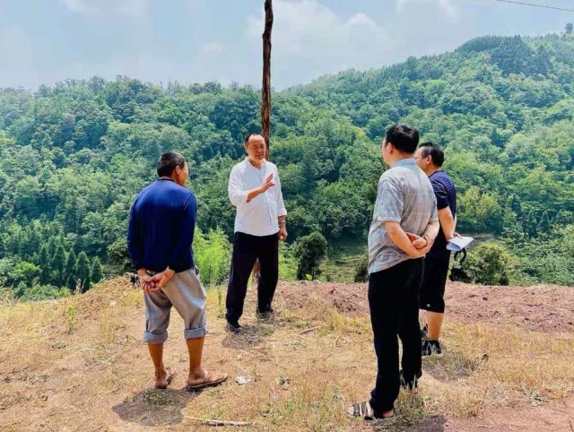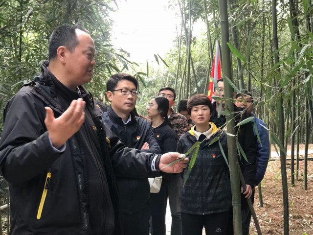 余学军(左二)基层调研宜宾竹产业发展情况
