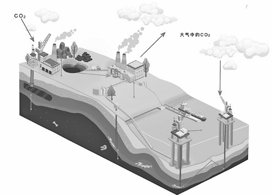 人工碳捕获与碳封存示意图