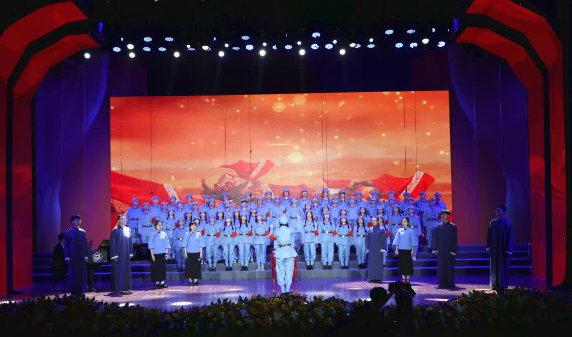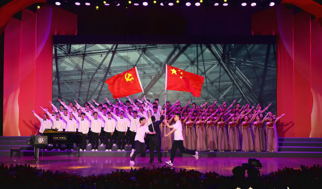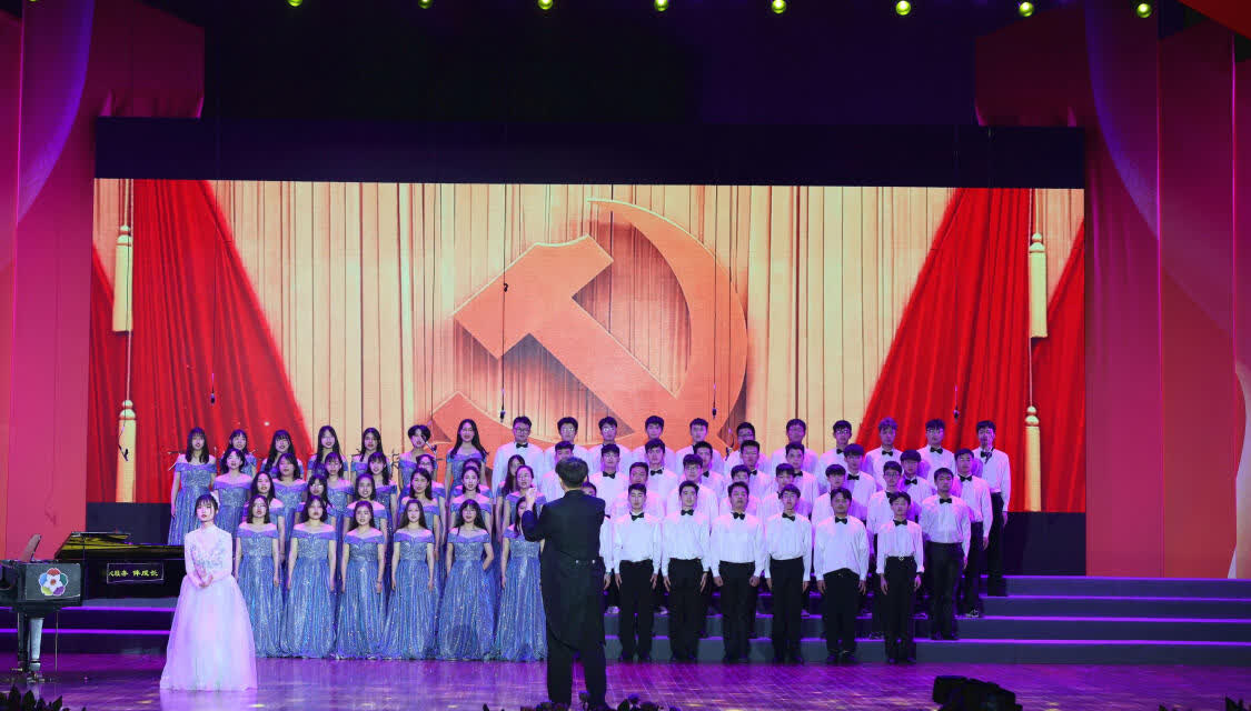舞台上,歌声嘹亮,一首首红歌唱出了学生们对历史的缅怀,更唱出了他们矢志不渝,渴望为祖国、为人民、为民族、为人类奉献青春的志气;舞台下,千名观众齐唱,影剧院变成了红色歌声的海洋;校园里,一首首熟悉的旋律不断响起:“没有共产党就没有新中国,没有共产党就没有新中国……”