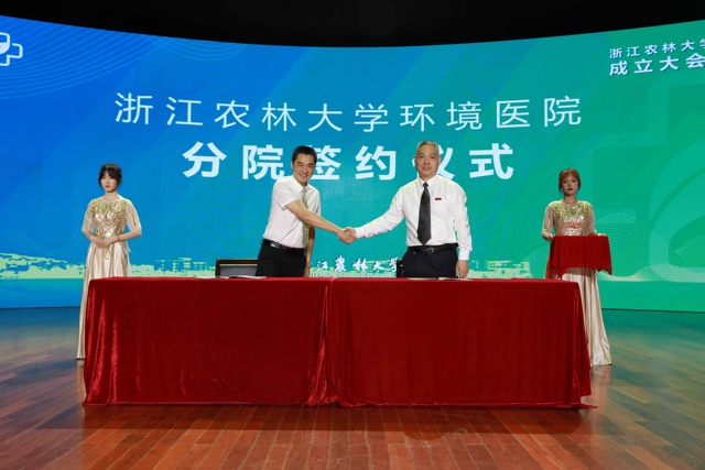 当天,浙江农林大学环境医院还与杭州市淳安县安阳乡、桐乡市河山镇、临安区太湖源镇、台州市路桥区峰江街道、临安区青山湖街道、安吉县灵峰山林场签约共建了6家分院,支持各分院开展科研和服务工作。浙江农林大学副校长胡祖吉表示,作为浙江省唯一以农林、生物、环境为办学特色的省属重点建设高校,浙农林人必须要在服务美丽中国建设中展现新担当新作为。成立“环境医院”是学校乘势而上,主动服务国家、区域生态文明建设的现实需要。