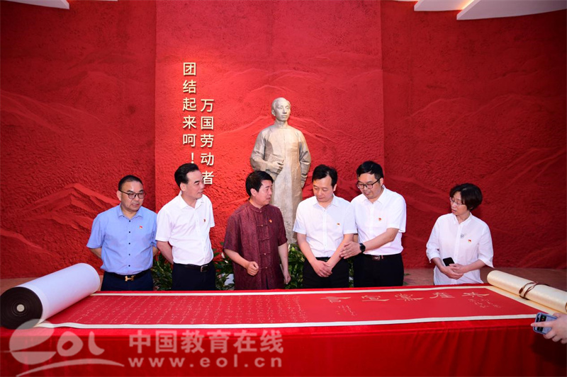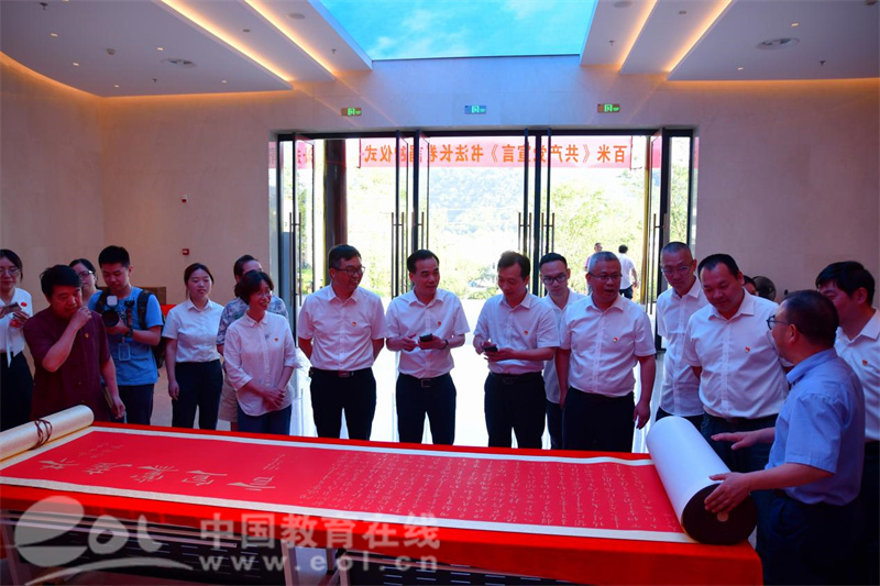 6月22日下午,为庆祝中国共产党建党百年华诞,浙江农林大学向浙江义乌分水塘的陈望道故居捐赠百米《共产党宣言》书法长卷。