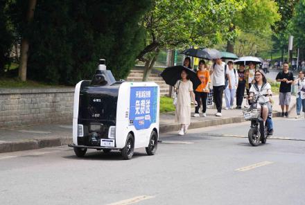 杭州生活浙江农林大学东湖校区,快递无人派送车正从快递驿站到各学生公寓楼之间给师生送快递。该快递无人派送车,通体白色,车身不大、容量不小,绝大多数包裹都可以配送,而且在校园里行驶过程中能旋转、避让、绕行、刹车、倒车、减速、停靠……自从有了快递无人派送车,该校师生的快递可以通过预约,请无人车将快递搬运到寝室楼门口,凭取件码领取快递。无人车抵达寝室楼后,还会自动拨打电话通知同学下楼取件,这是什么神仙校园生活~