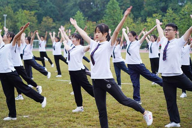 10月21日上午,杭州,浙江农林大学学生在操场上做广播体操。