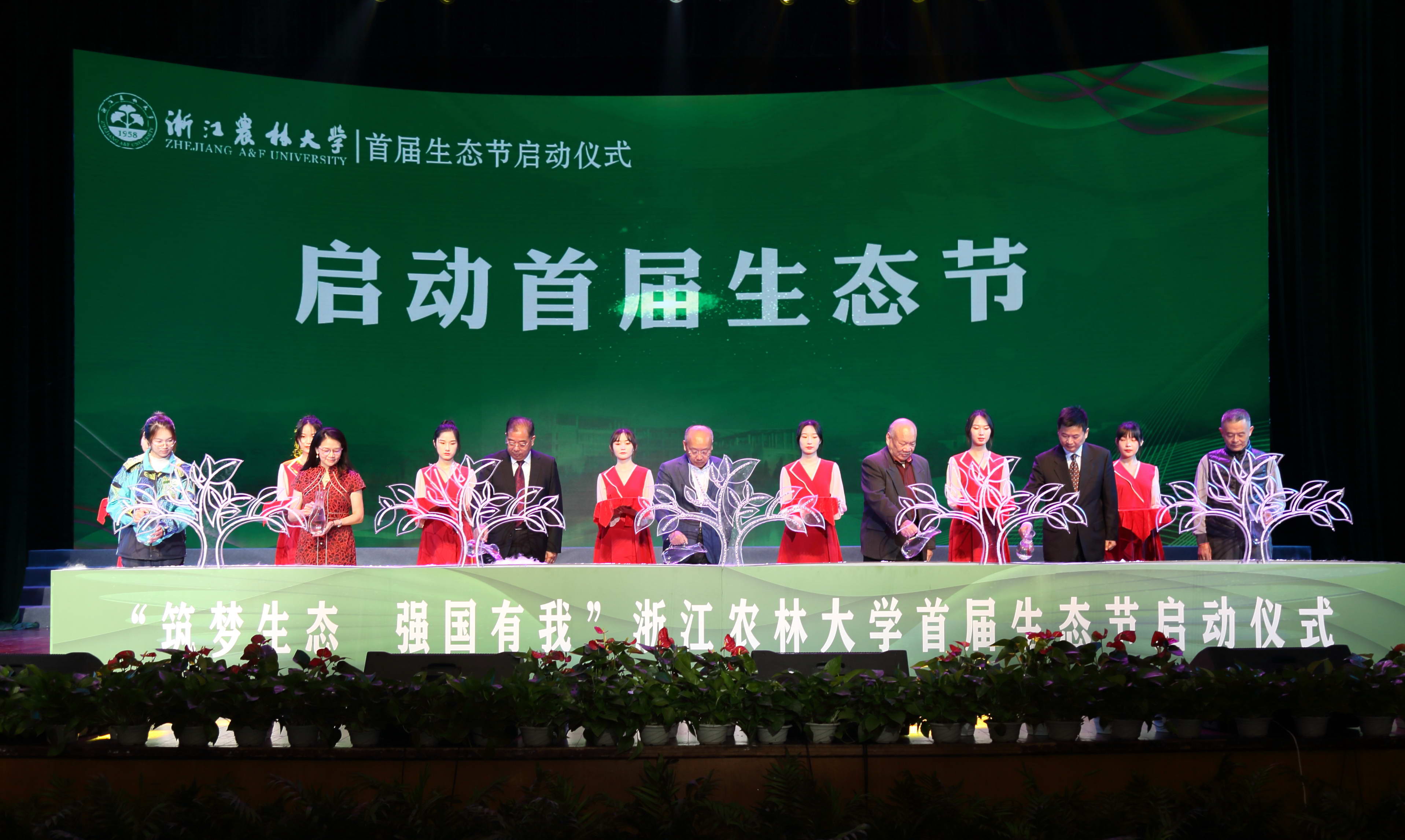 10月24日,浙江农林大学首届生态节正式拉开帷幕,发布了《浙江农林大学生态文明公约》。十几名生态志愿者发出了“建设生态校园 共享幸福农林”的倡议。校园里一批生态育人先进个人和集体受到了表彰。