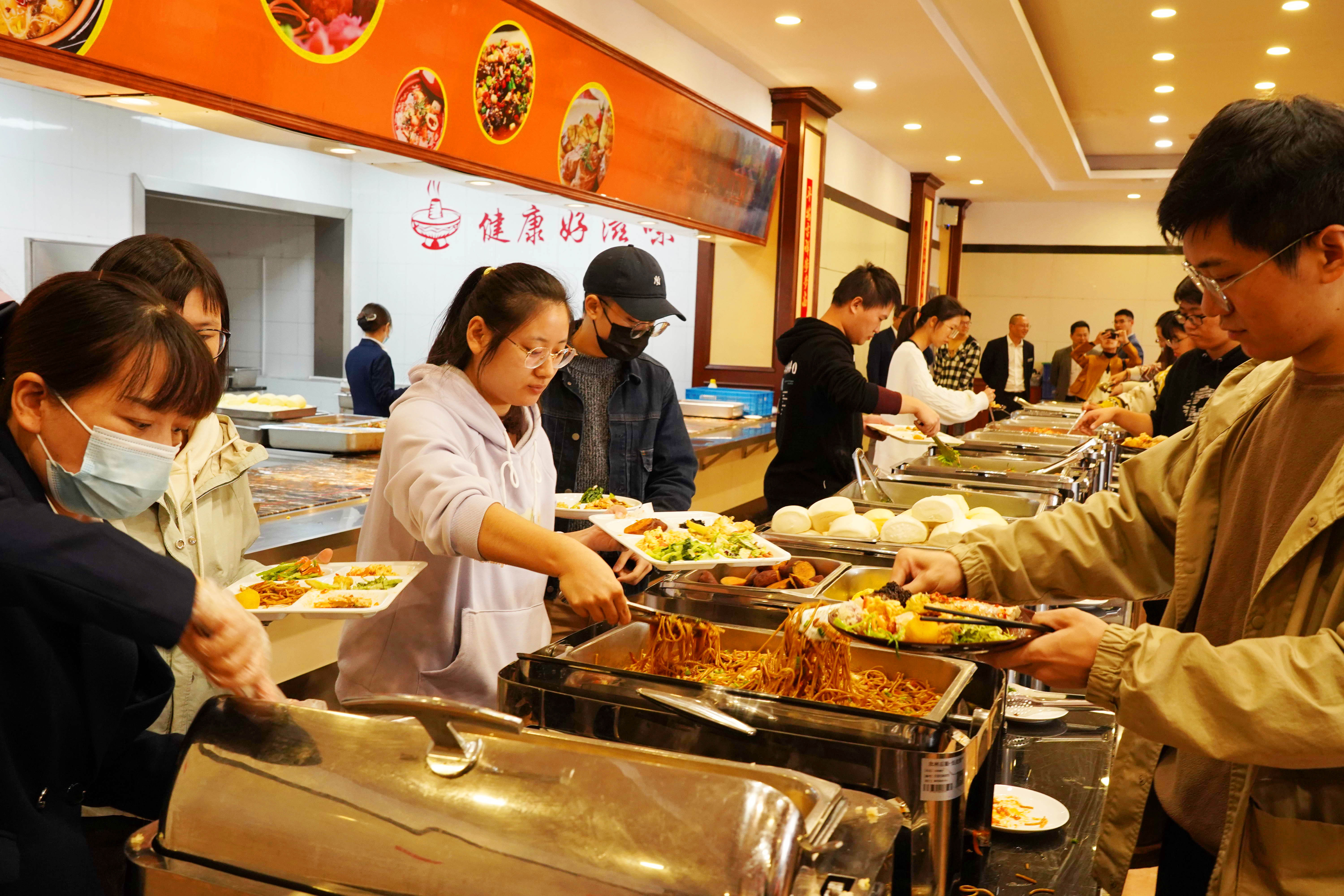 有荤有素有汤,有鱼有肉有虾,有米饭也有稀粥,还有多种水果饮料随意选——在高校吃一顿这样的自助餐,每人需要多少钱?浙江农林大学西径食堂三楼给学生开出的价格是:单人19.9元,两人以上每位14.9元。唯一的要求,就是必须光盘!