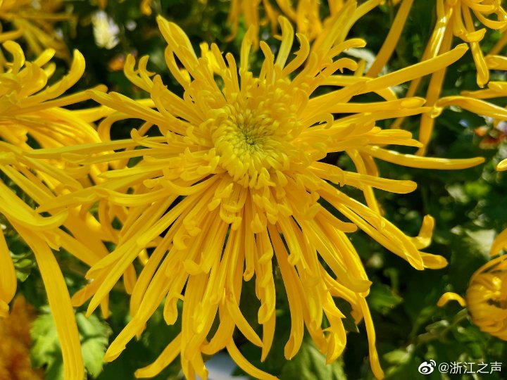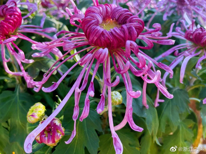 来到浙江农林大学园林学院的公园内,这里200多个品种的菊花正在争相斗艳,一丛丛、一簇簇,一堆堆,又如一棵棵大海葵,随着“波动”而一起一伏,扭来摇去,把整个农林大校园的秋季点缀,师生们在花丛之中,心旷神怡,流连忘返。“这边菊花品种实在是太多了,有2000多盆,我们从来都没看到过这么多菊花,让师生们大开眼界。”学生们沉浸在花海里赏菊、拍照,品味着这个季节的优雅。