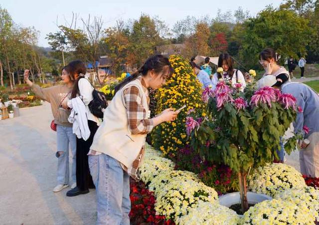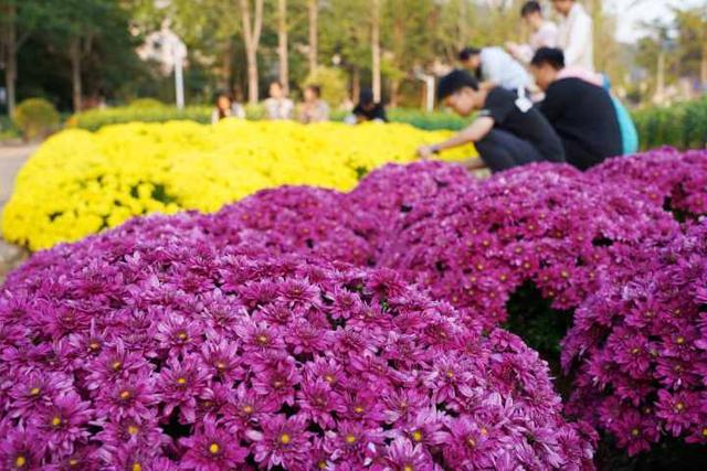 这几天,浙江农林大学园林学院教育教学实践基地里, 200多个品种的数万朵菊花争相开放,白色、桃红、金黄、紫红、墨绿,一丛丛、一簇簇、一堆堆、一盆盆形状不一的菊花绚丽多彩,把整个校园的秋季点缀得格外美丽,吸引了全校师生驻足观赏,拍照留念。
