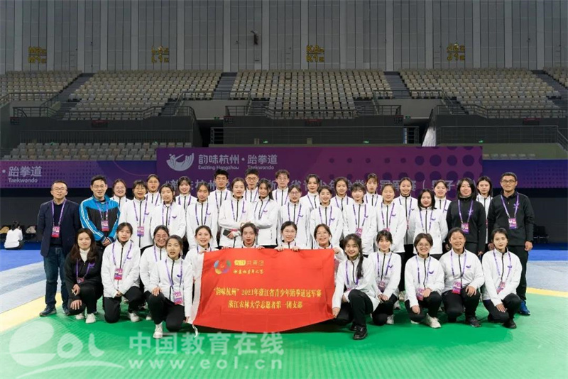日前,“韵味杭州”浙江省青少年跆拳道冠军赛(男子组)在杭州市临安区文体会展中心举行。作为此次赛会志愿服务单位,浙江农林大学派出了由1名场馆志愿者主任、2名场馆志愿者副主任、5名领队教师,158名学生志愿者,共计166名师生志愿者组成的团队服务此次赛会。