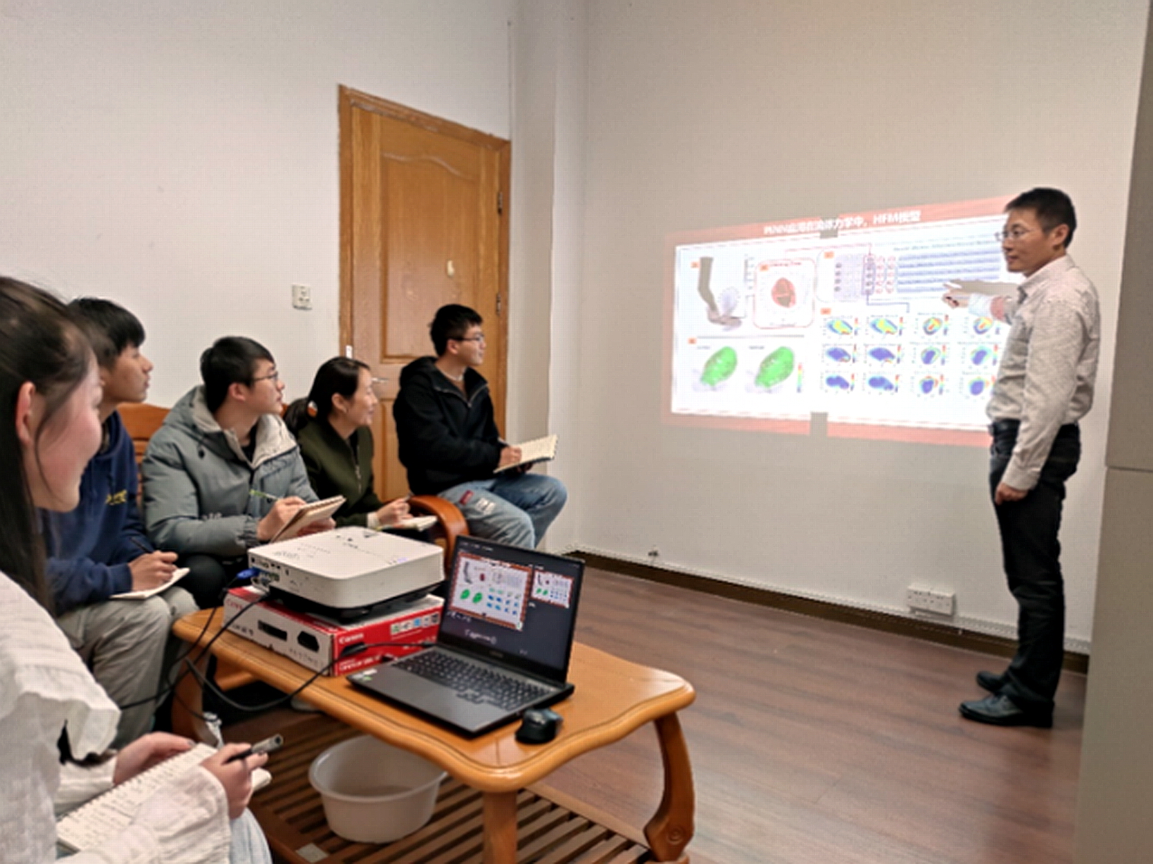 光学工程学科师生联合党支部师生党员在一起研讨。浙江农林大学供图