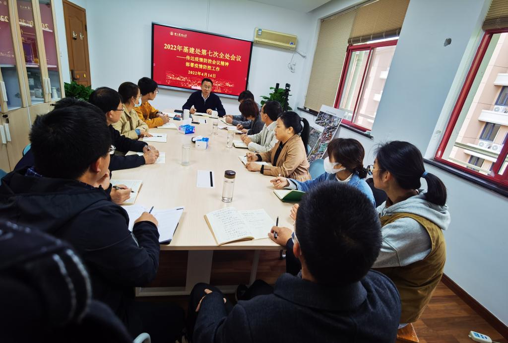 4月14日,基本建设处召开全处会议,传达学校疫情防控会议精神,部署疫情防控工作,全处人员参加会议。