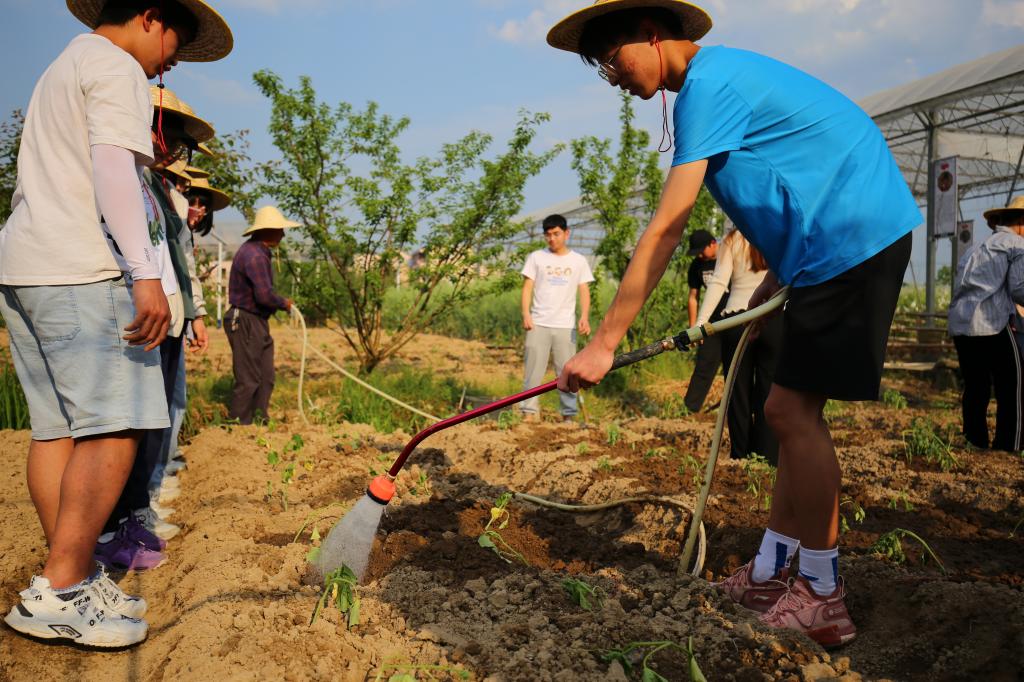 在农作园师傅、管理人员的指导下,大家分工合作,有的驾驶手扶旋耕机进行犁地、有的挥锄平整地块、有的配合师傅运来盆苗,师生们小心地将一批辣椒、番茄、黄瓜苗从育苗盘中移栽到地里,培土压实,浇水润苗……劳作结束后,大家愉快地在自己的责任地块前合影留念,记录劳作瞬间,并纷纷表示要继续管好自己的责任田,呵护小苗成长直至结果收获。