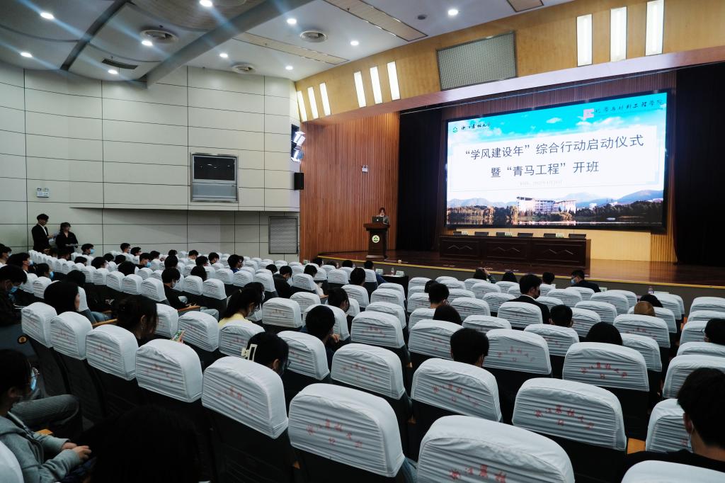 4月28日,化材学院在图书馆第一报告厅举办“学风建设年”综合行动启动仪式暨“青马工程”开班。