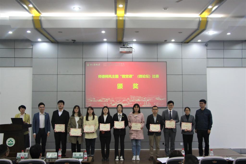 5月12日下午,化材学院“为党育人,为国育才,献礼党的二十大”师德师风主题“微党课”(“微论坛”)比赛在学九211报告厅举行。校党委委员、宣传部部长、教师工作部部长倪建均,校党委组织部、校人事处相关负责人参加并担任评委。