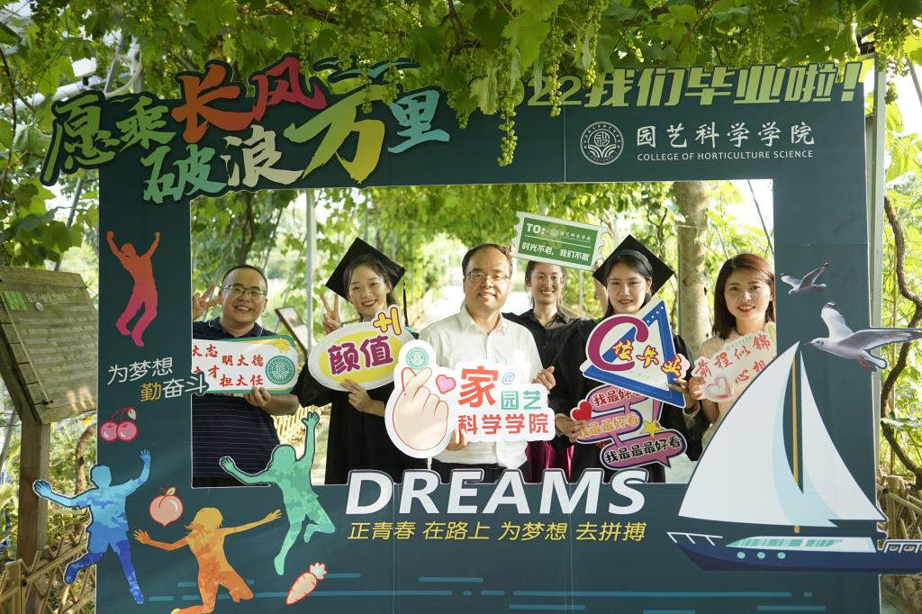 学院团学与志愿者对农作园进行了精心布置,排练了歌曲节目,为毕业生送上诚挚祝福,设置了有园艺专业特色的系列立体造型展板,供大家合影留念,更有冷餐会供师生们品尝交流。学院还通过举行2022届定向生毕业生座谈、校友联络员和班级代表座谈、餐叙话别等活动,祝贺毕业生完成学业,并希望他们乘风破浪,奋勇争先,开启好追求美好生活的新征程。