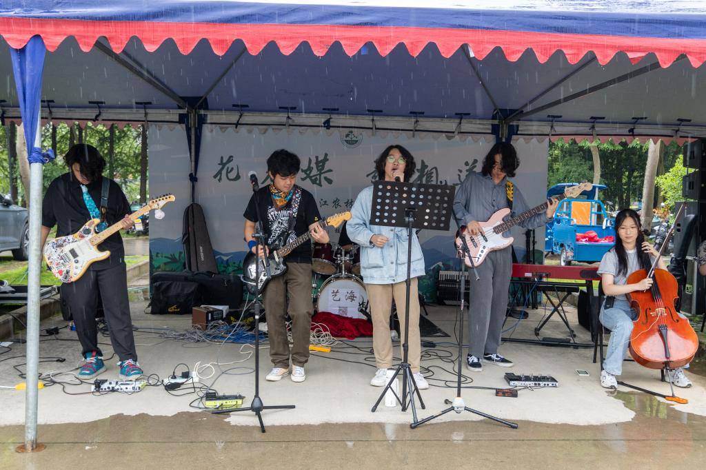 “以歌相送,祝愿朝露生辉乘风破浪”,“等一个自然而然的晴天,我想要带你去海边……”拉闸乐队和ATBT乐队带来的歌曲在丝丝细雨中尽显浪漫,美味冷餐,夏日细雨,动人旋律,是美好,是青春,更是农林记忆。校助团以歌相送,借以六月的花海,祝愿2022届毕业生朝露生辉乘风破浪,让青春在祖国和人民最需要的地方绽放绚丽之花,奏响青春之歌。