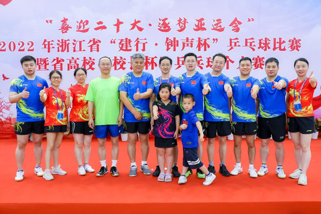 7月6日至9日,由浙江省教育工会、浙江省钟声体育协会主办的“喜迎二十大·逐梦亚运会”2022年浙江省“建行·钟声杯”乒乓球比赛暨省高校“校长杯”乒乓球个人赛在丽水市体育中心举办。由校工会带队,来自本部和暨阳学院的10位老师代表学校参赛,夺得混合团体赛高校组第四名,个人赛教授组第三名、青年组第八名,是学校近十年来的最好成绩。