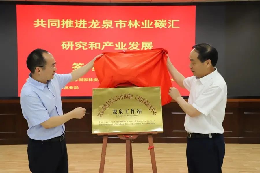 近日,学校国家林业和草原局竹林碳汇工程技术研究中心与龙泉市林业局签订了战略合作协议,合作推进龙泉市竹林碳汇研究和产业发展,龙泉市副市长余华明和浙江省特级专家周国模教授共同为“国家林业和草原局竹林碳汇工程技术研究中心龙泉工作站”揭牌。