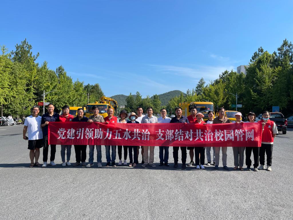 8月9日,机关第十四党支部与杭州临安排水有限公司党支部结对,共同治理校园污水管道,助力五水共治与生态校园建设。排水公司组织“红旗清畅队”来校对校园排水管道溢满难点地段进行清疏。公管处、基建处、后勤中心相关负责人参加现场治理。