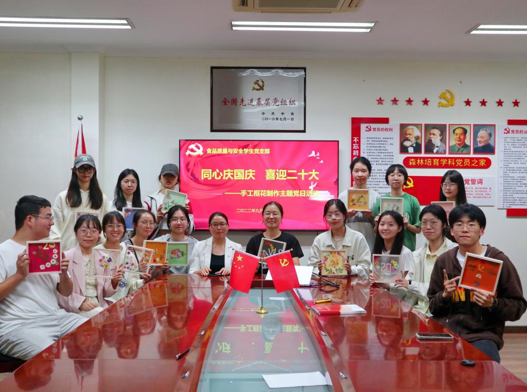 9月29日,食健学院食品质量与安全学生党支部组织开展“同心庆国庆,喜迎二十大”手工框花制作主题党日活动。