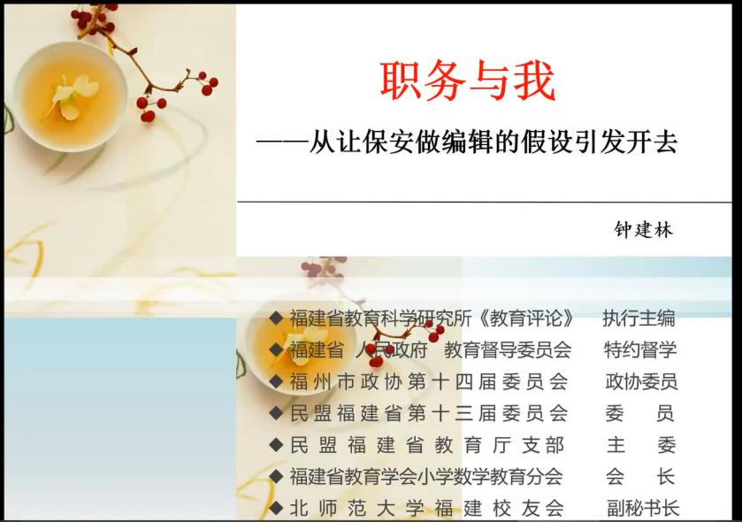 为提高学校教职工职业水平与行政岗位专业能力,增强服务意识,10月10日,园林学院党委邀请《教育评论》执行主编、福建省人民政府特约督学钟建林老师,为老师们开展了题为《职务与我——从让保安做编辑的假设引发开去》的讲座。校内行政人员、各学院辅导员及团学组织的主要学生干部参加了讲座。本次讲座由校办、校宣传部、学工部、园林学院党委主办,园林学院学生办、院办承办。