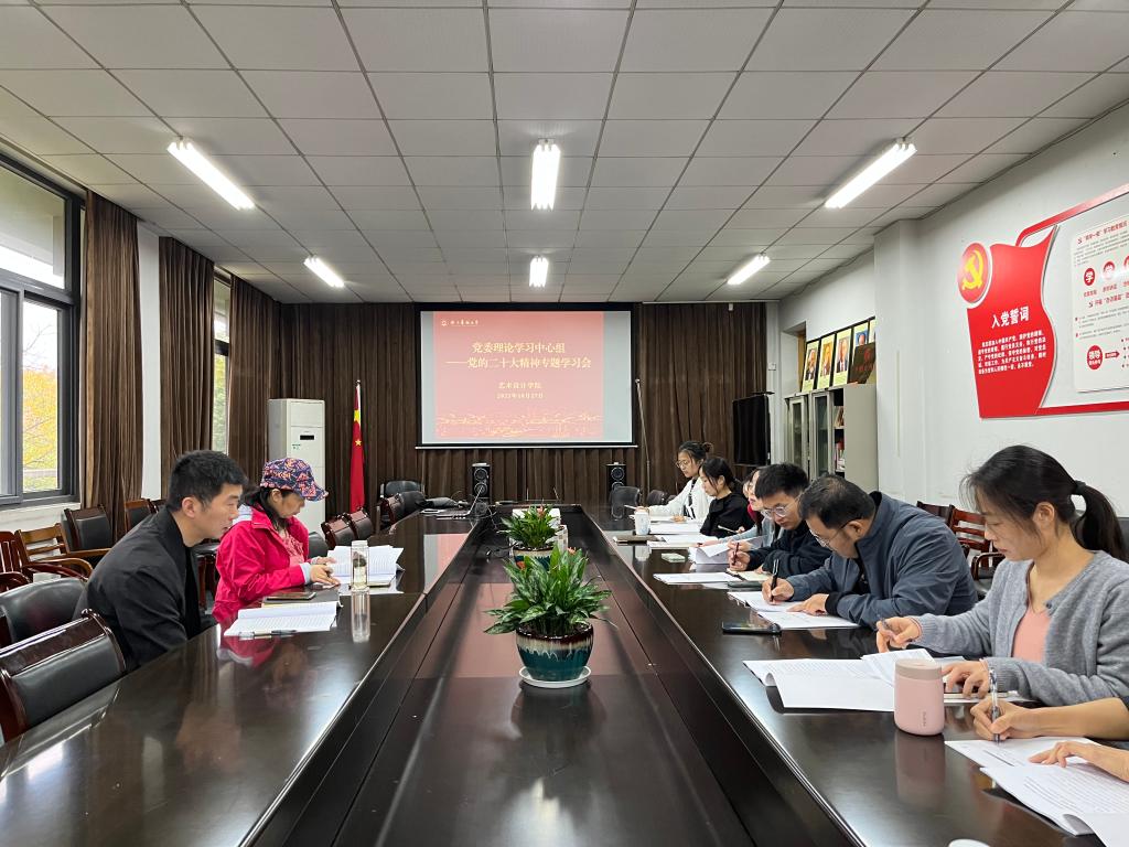10月27日,艺术学院党委书记陈思宇主持召开院党委理论学习中心组会议,深入学习党的二十大精神。学院党委理论学习中心组成员参加了此次会议。