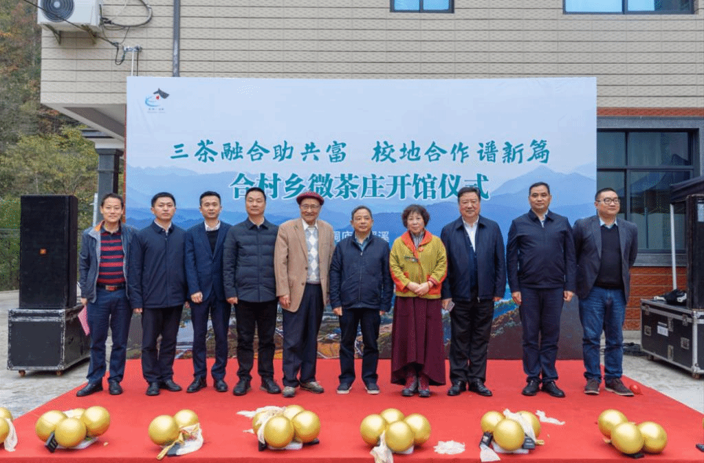 11月15日,茶学与茶文化学院与合村乡校地合作签字授牌暨微茶庄开馆仪式在桐庐合村乡瑶溪村举行。杭州市原副市长、茶文化研究会会长何关新,茶文化界泰斗姚国坤教授,茶学与茶文化学院名誉院长王旭烽教授,桐庐县政协、县委组织部、县农业农村局领导,茶学与茶文化学院班子成员、相关教师学生代表,合村乡班子成员、村干部代表、本地村民和茶农参加。