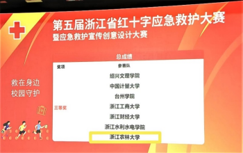 经过激烈角逐,我校获团体三等奖,参赛队员会计学211潘伟杰获个人单项二等奖,城乡规划202高丹梅、法学211王艺获个人单项三等奖,园林213刘奕、环境设计201胡惠淇分别获应急救护宣传设计大赛IP类二等奖和三等奖。本次大赛充分展现了浙农林青年学子良好的精神风貌,实现了我校在红十字应急救护工作上的新突破。